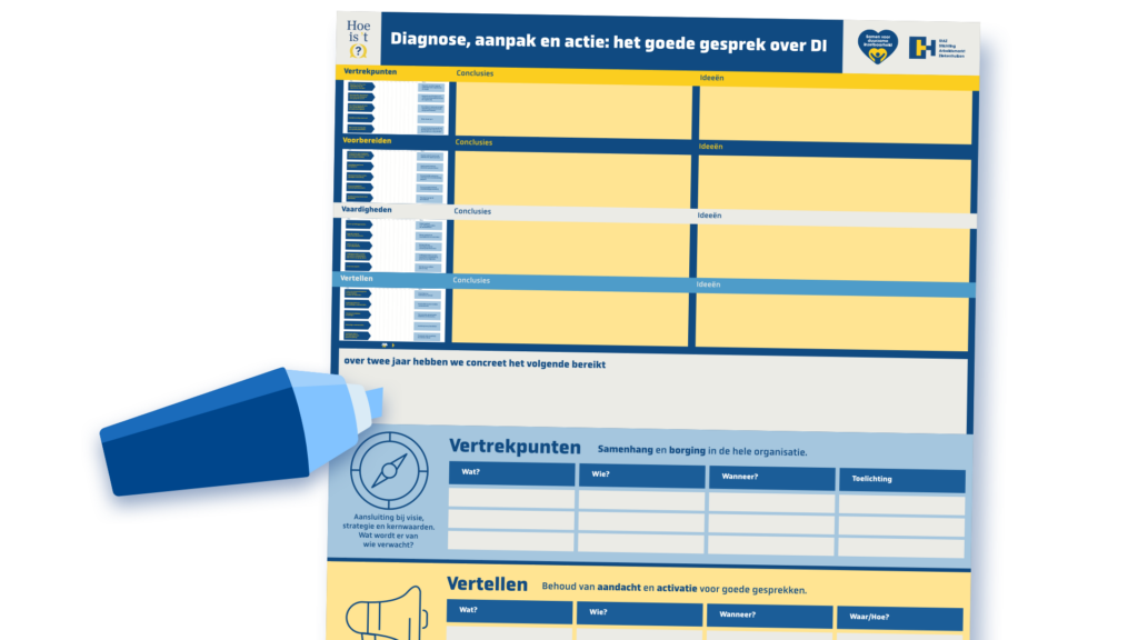 Gebruik de diagnose-aanpak-actieposter om vervolgens de aanpak en acties per pijler te concretiseren.